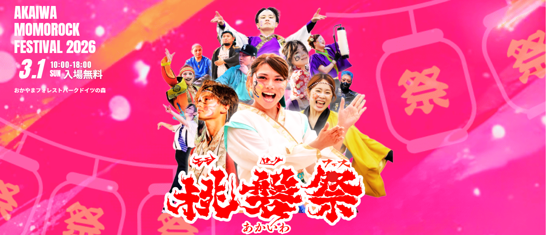 2026年3月1日㊐おかやまフォレストパークドイツの森で行われる、赤磐市の魅力を発信するイベント「あかいわ桃磐祭(モモロック)」の公式ホームページがオープンしました!