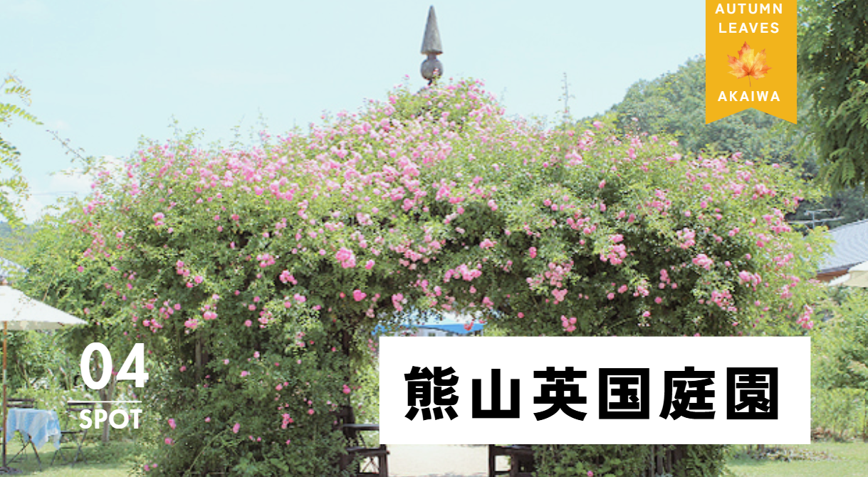 英国式のガーデンと四季折々の花々が楽しめます。秋には紅葉とバラが共演し、ヨーロッパの庭園を思わせる美しい風景が広がります。公園や庭園で、紅葉を眺めながらお弁当を広げるのも楽しい過ごし方。特に「山陽ふれあい公園」や「熊山英国庭園」では、家族連れにもぴったりです。